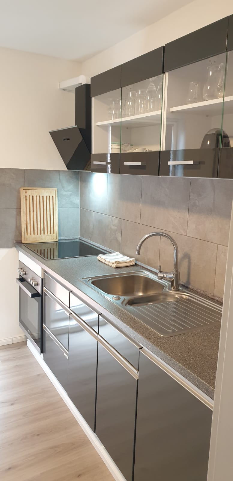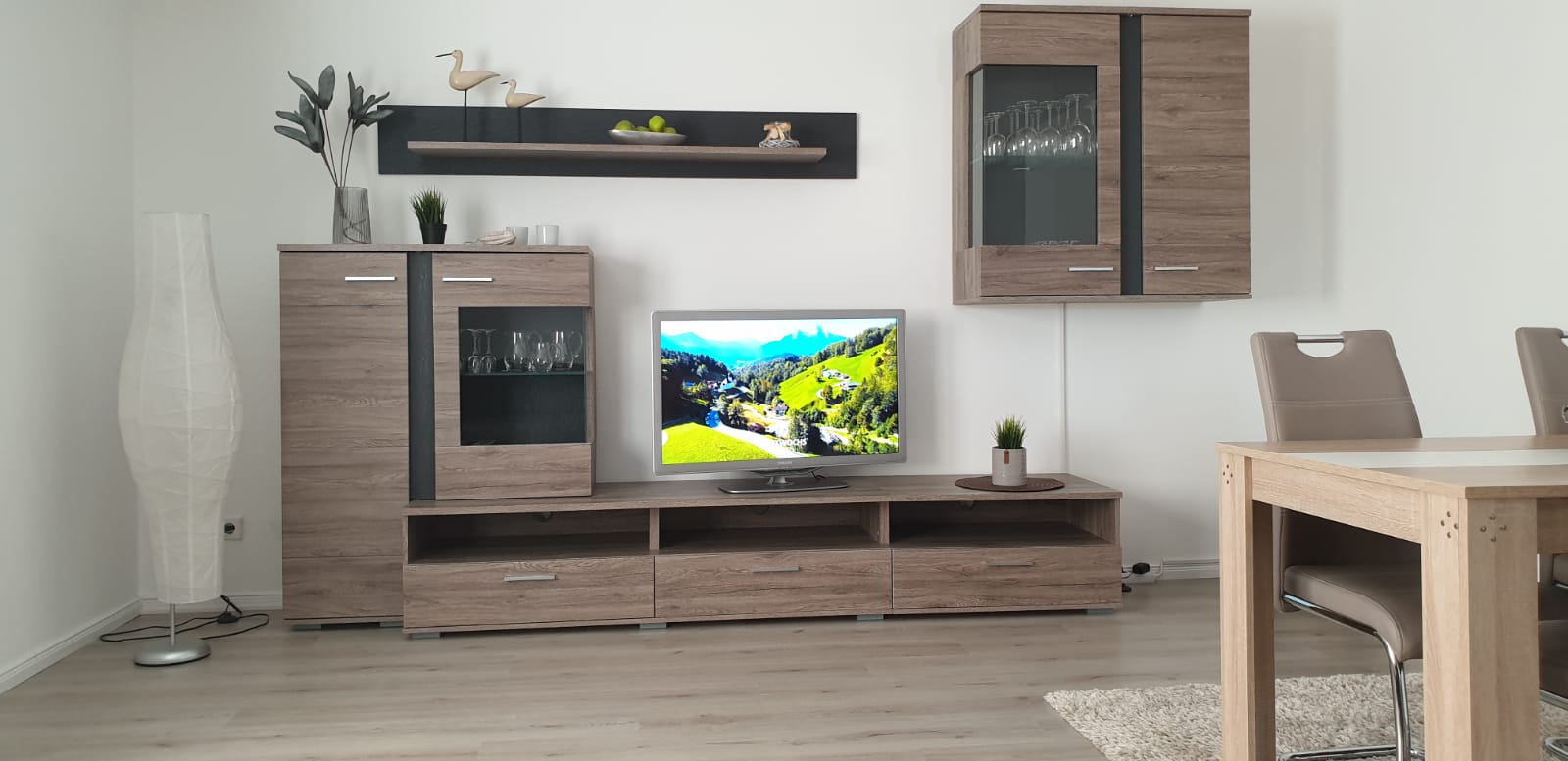 - Ausstattungen: Bad mit Dusche, kleiner Balkon, komplett eingerichtete Küche, Trockner, TV, Waschmaschine, Wohnlandschaft